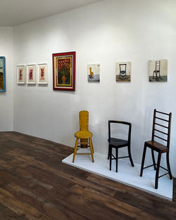 I read that the exhibits at Betty Parsons Gallery were often only two weeks long. We are in between shows right now, so it is perfect timing for a two-week exhibit. Thus, our new exhibit is Limbo. Limbo will be a short experiment of hodgepodge, things overlooked, and some things we have yet to exhibit, like three embroideries by Amber Mustafic, three chair paintings by yours truly, Josh’s fascinating Professor Troxell’s Flintstones-like petrophone, and an Afro-Futurist painting by Raul Hardie, a last look at the visionary Earl Drawings, and other surprises. This one will be short and sweet—catch it before it’s too late. Then catch the opening of Lee Brozgol and Charles Jarm: Eldridge & Mulberry on April 15.